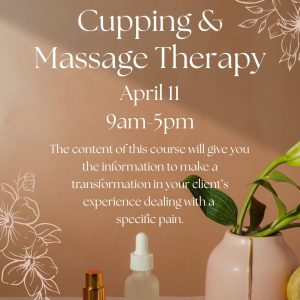 Cupping & Massage Therapy: The Conditions Below Let us build upon the foundation of Intro to Cupping Therapy with eight hours of continuing education, approved by NCBTMB. The content of this course will give you the information to make a transformation in your client’s experience dealing with a specific pain. The course facilitates treatment protocols […]